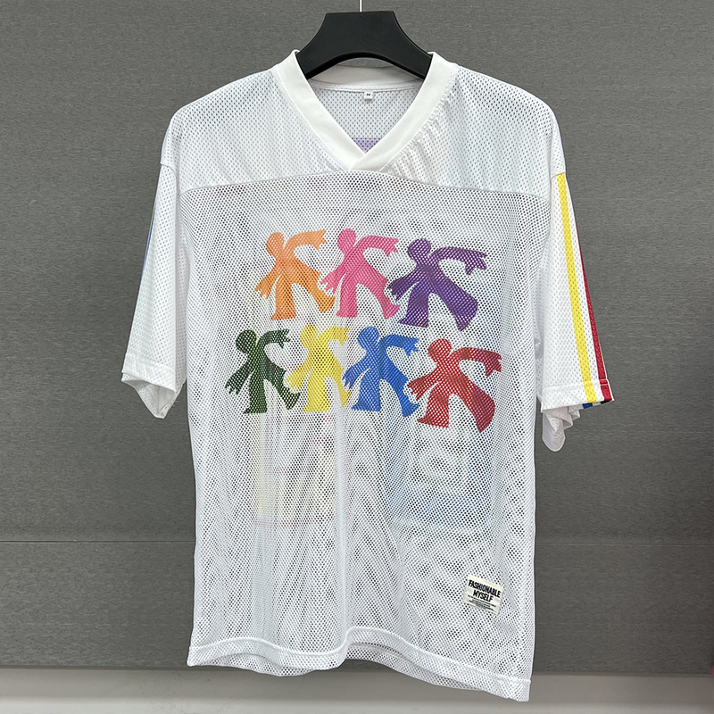 Summer Printed Graphic Nylon Mesh T-shirt Custom Boxy Oversized Jersey T-shirt Round Neck Sublimation Football T-shirts for Men