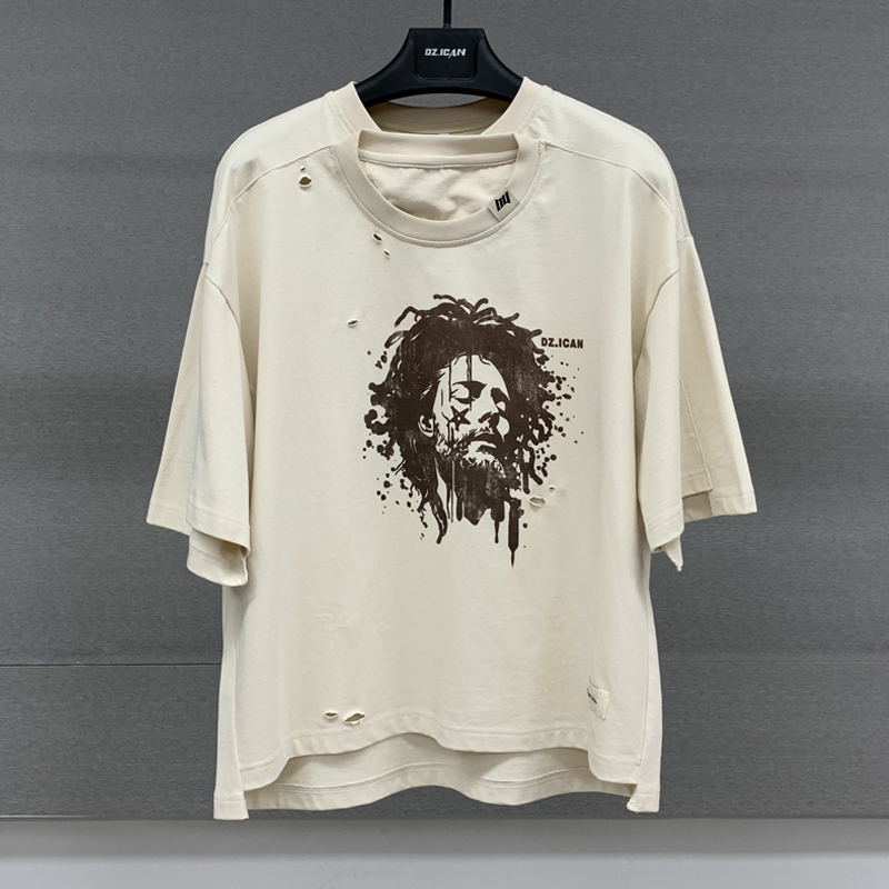 You are here:Home / Products / T-Shirt for Men / Graphic T-shirts / Vintage Distressed Double Neckline Tee Shirt Boxy Oversize Printed Cotton T-shirts Streetwear Drop Shoulder T Shirts for Men